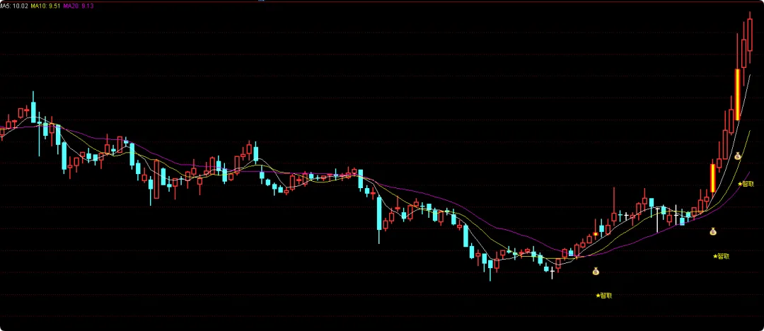 DRAWTEXT(核心买点, LOW*0.94, ‘★智取’), COLORYELLOW;