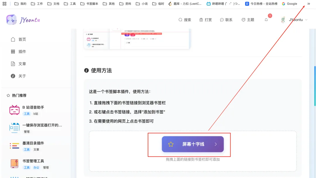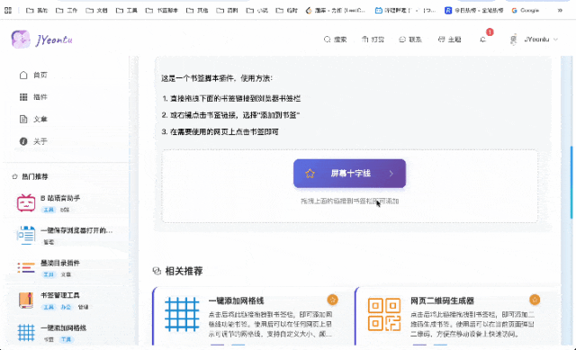 点击书签,立刻在当前页面生成跟随鼠标的十字准星。