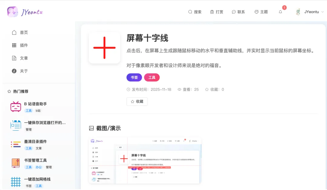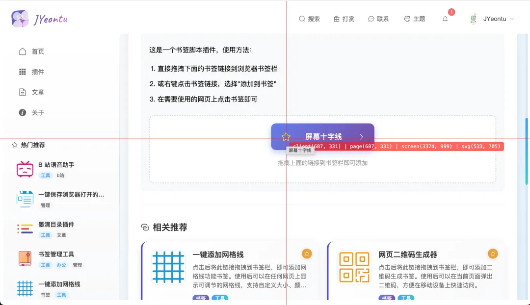 最后干脆自己写了个书签小插件,点一下就能在页面上可视化显示鼠标定位和十字辅助线,坐标在哪、元素对不对齐,一眼就看明白,开发调试瞬间方便多了。