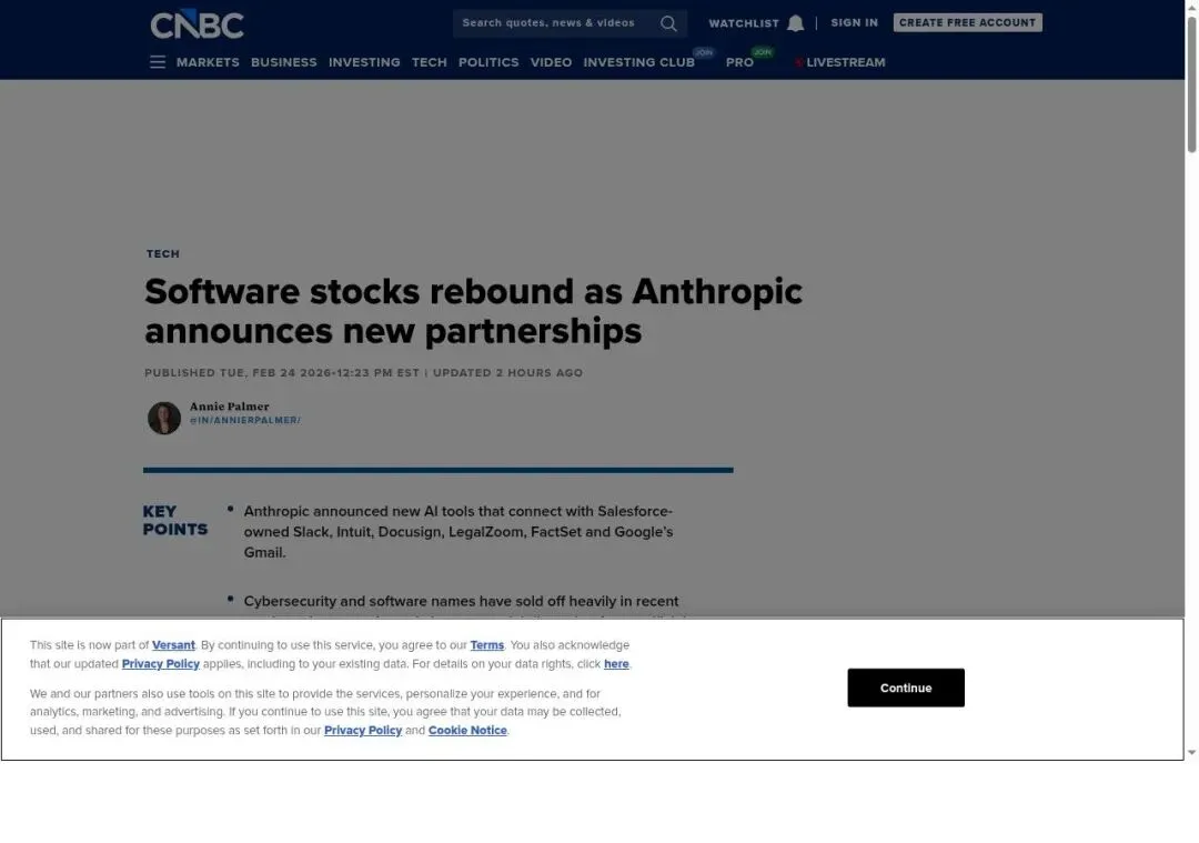 Salesforce涨了4%。DocuSign涨了2%。Thomson Reuters,就是一个月前跌了16%的那家,这次暴涨11%。FactSet涨了6%。连之前被吓崩的网络安全公司也回血了,Zscaler涨4%,SentinelOne涨3%。