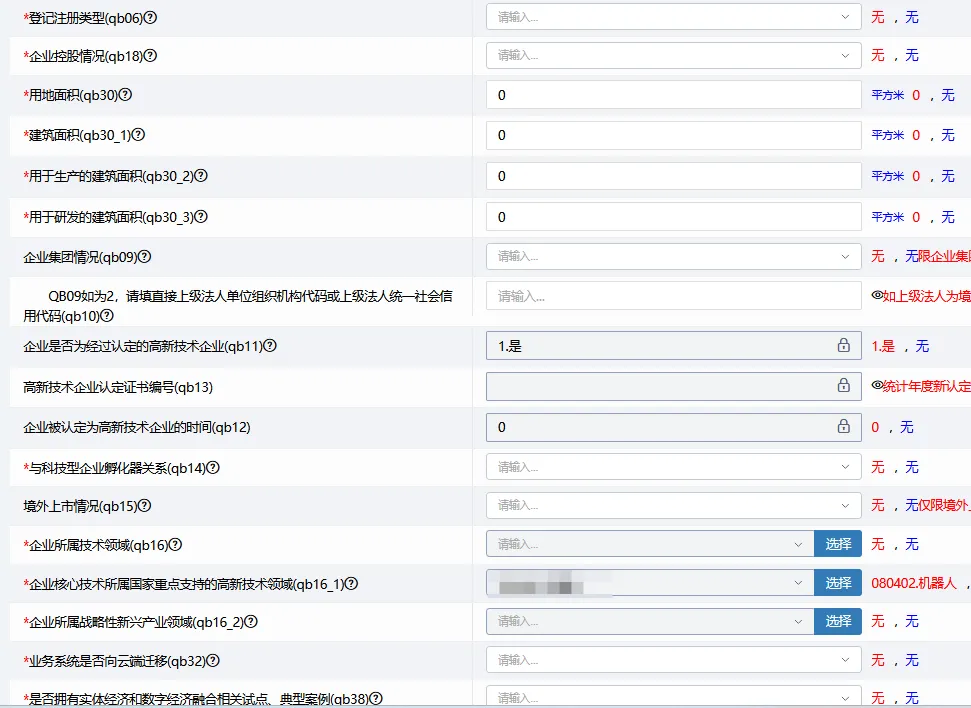 填写要点:行业代码、会计标准、高新技术领域等需与上一年对比。
