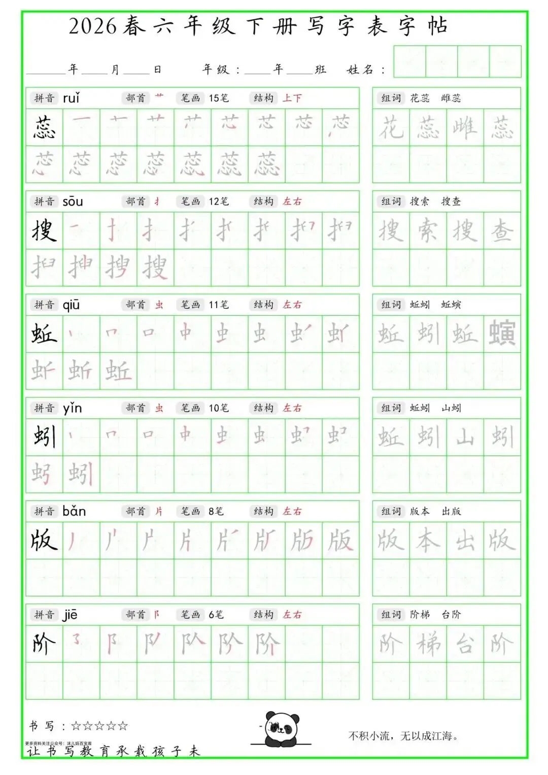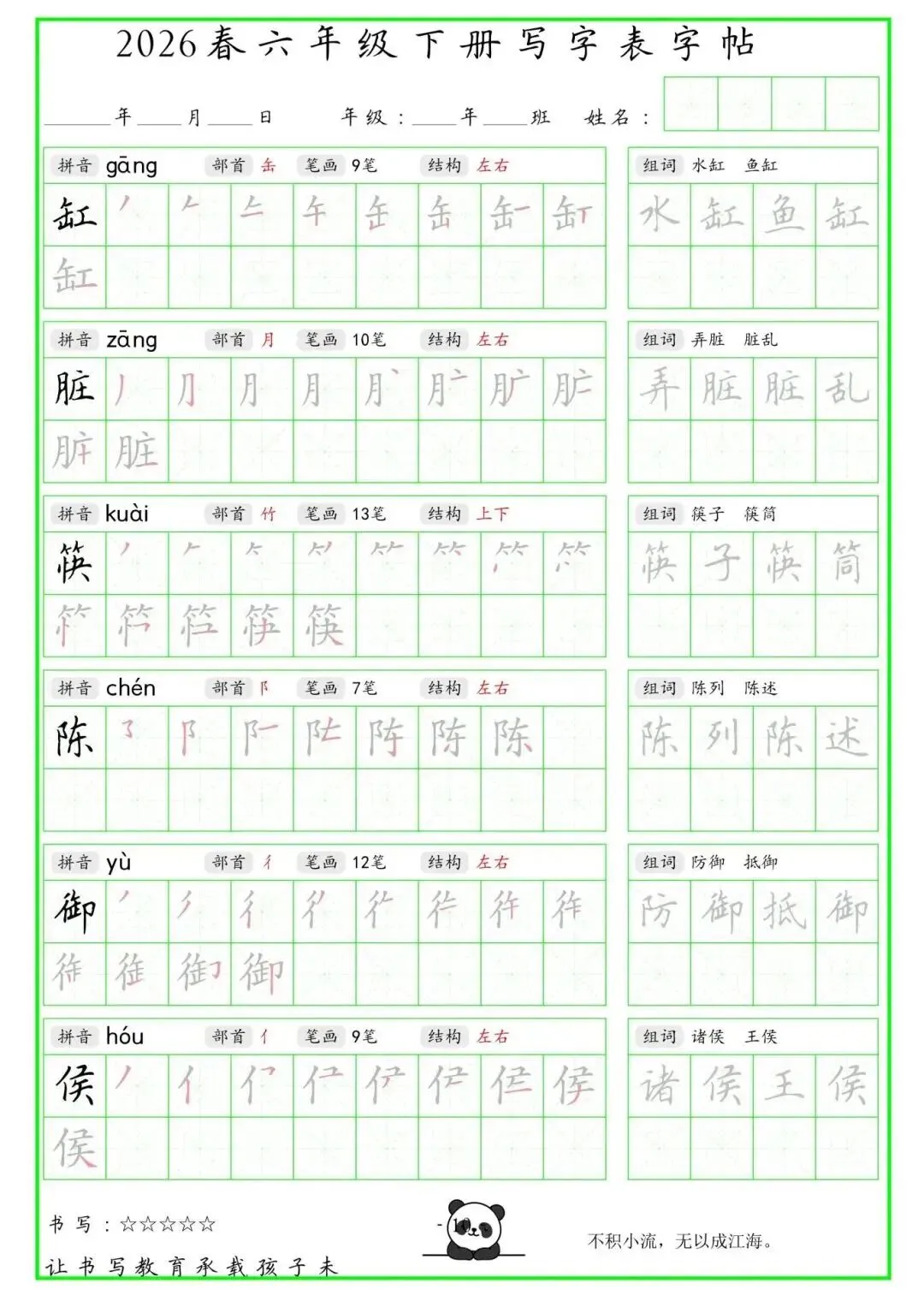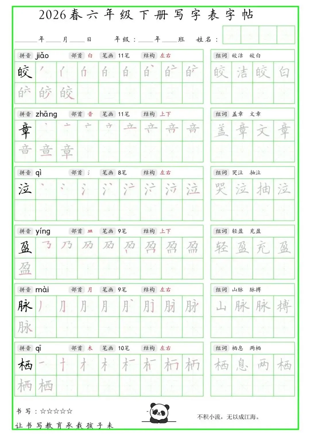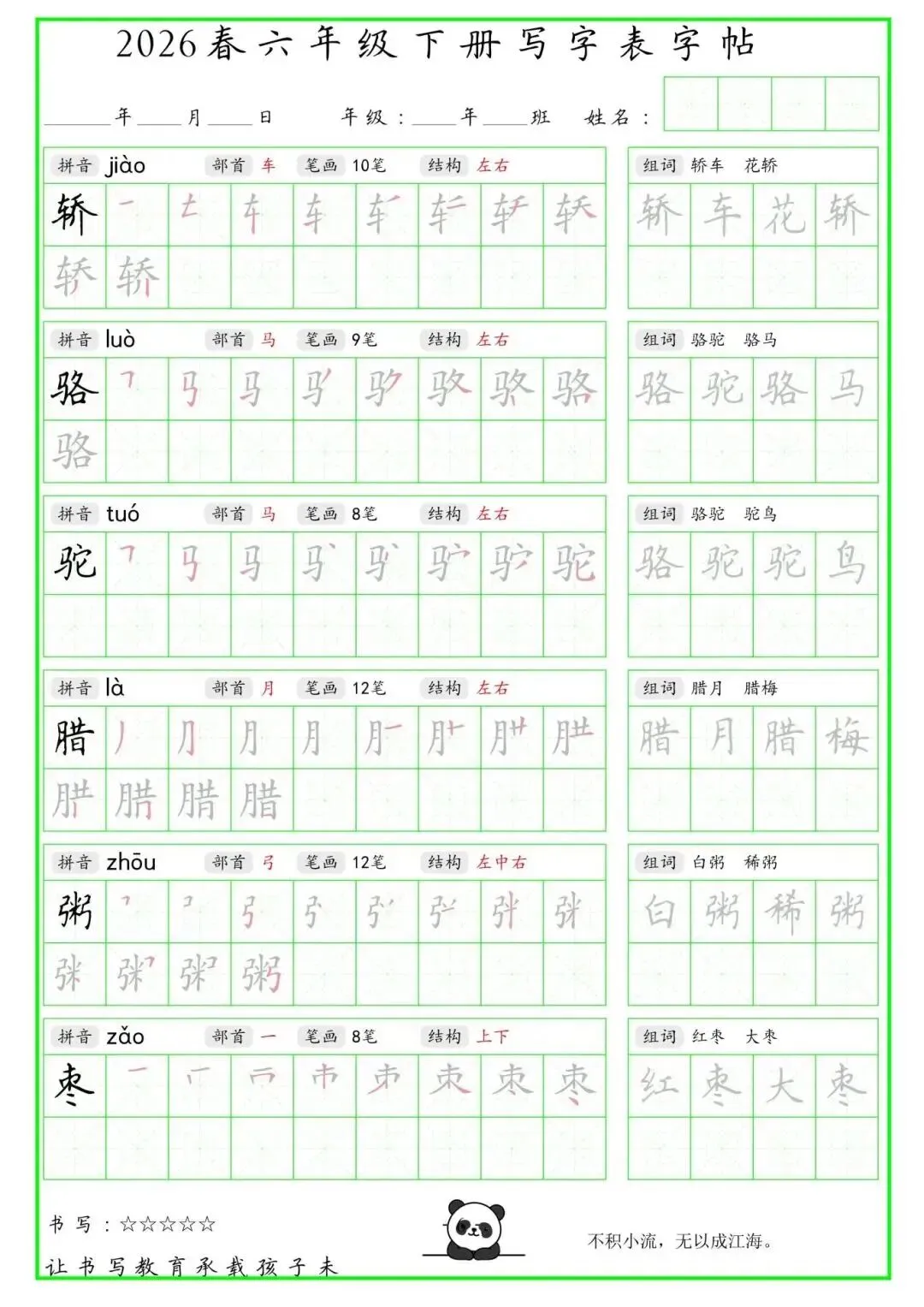 【免费下载】2026学年六年级下册人教部编版语文生字练字贴,同步课本含拼音笔顺 | PDF高清电子版可打印