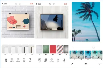它支持多达20个唯美边框,所有边框都可以免费使用,每个边框都支持滑动调节缩放、反光和阴影。