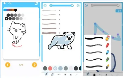 它还支持的功能包括:双指滑动拖拽、双指捏合缩放、跟随绘画素材涂色、猜画游戏。