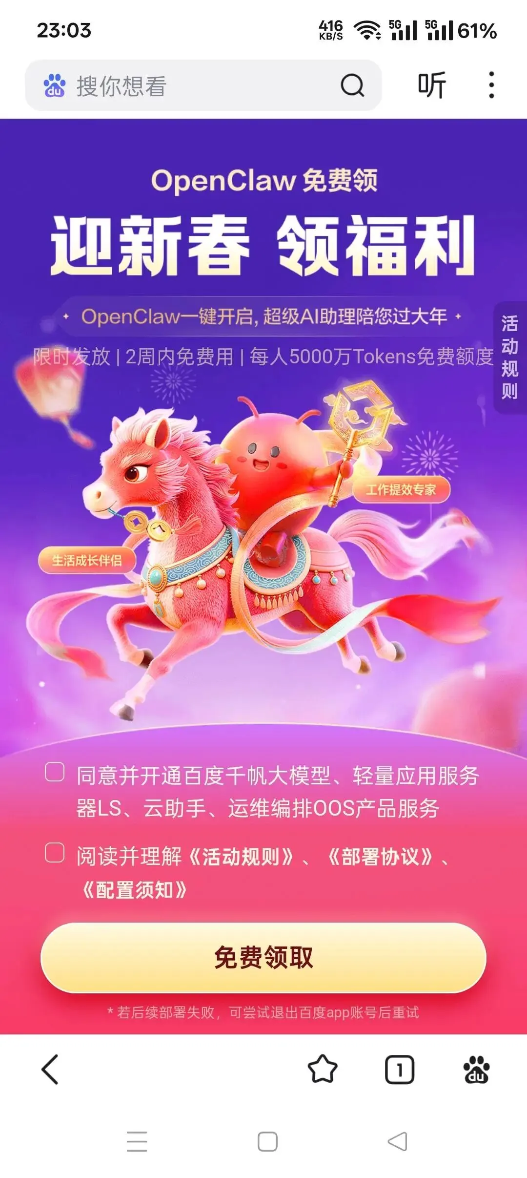 本站文章均为手工撰写未经允许谢绝转载:夜雨聆风 » 百度APP免费部署OpenClaw·添加了步骤视频 2026.2.24