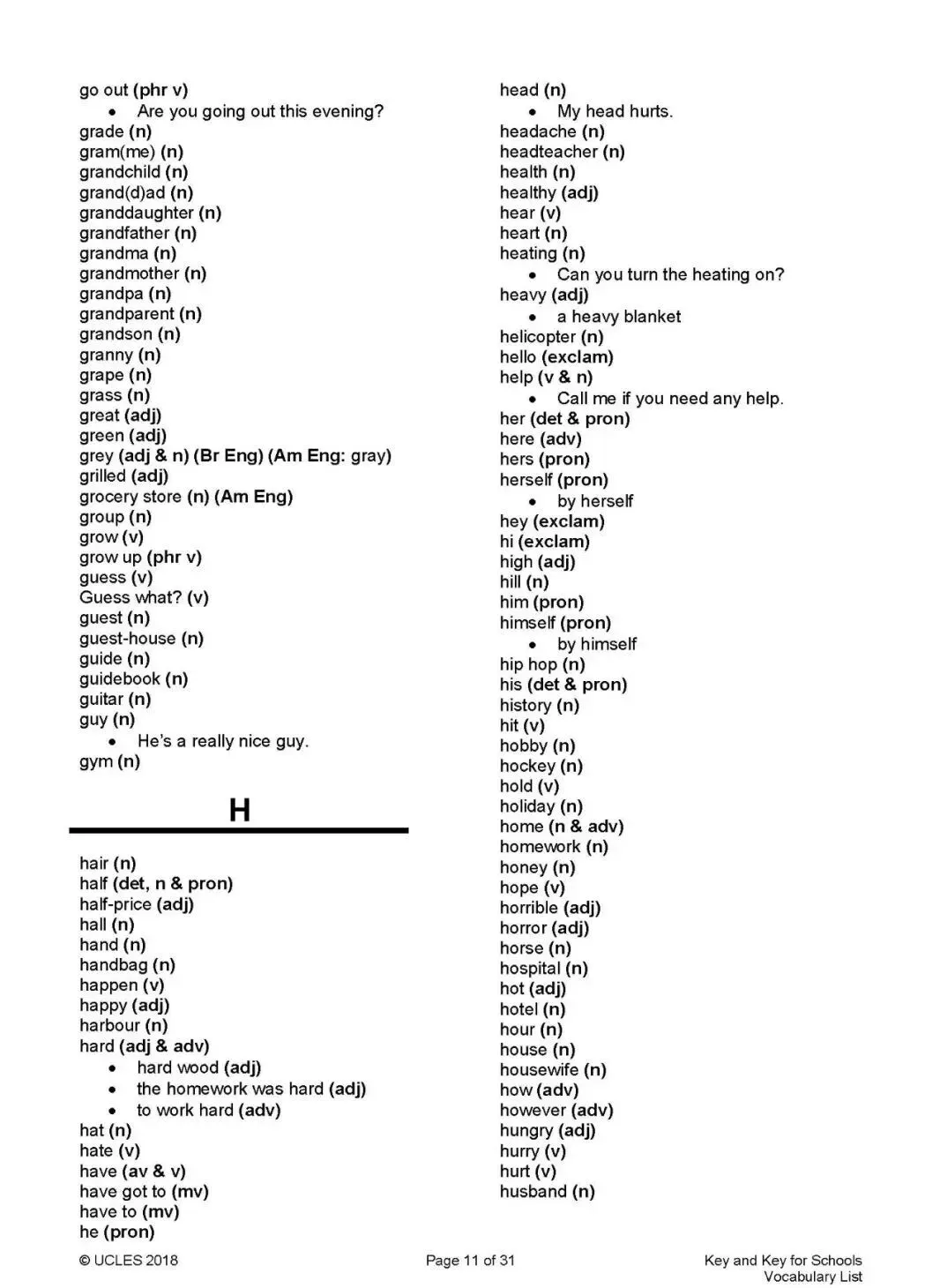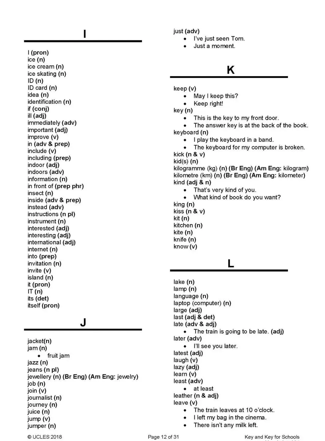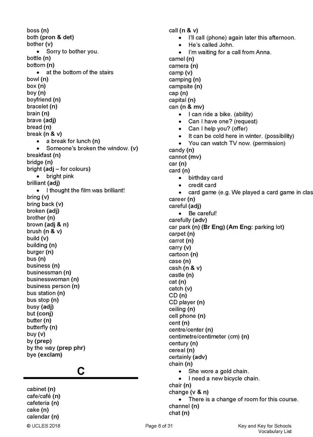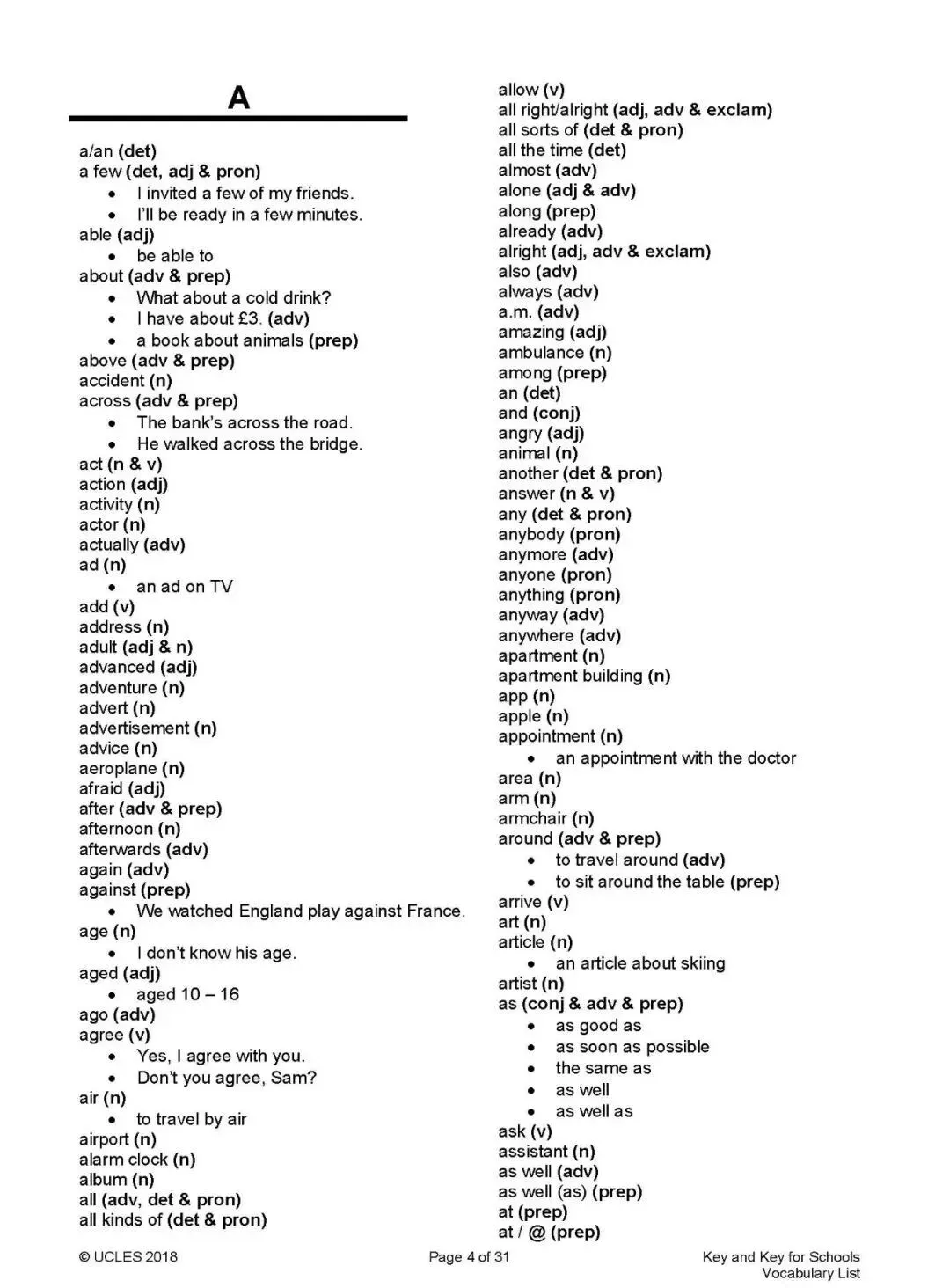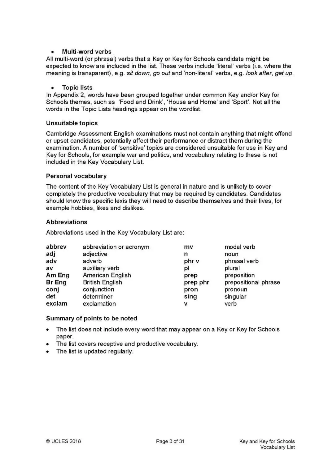 剑桥考评中心官方公布的最全的KET词汇表,共31页。