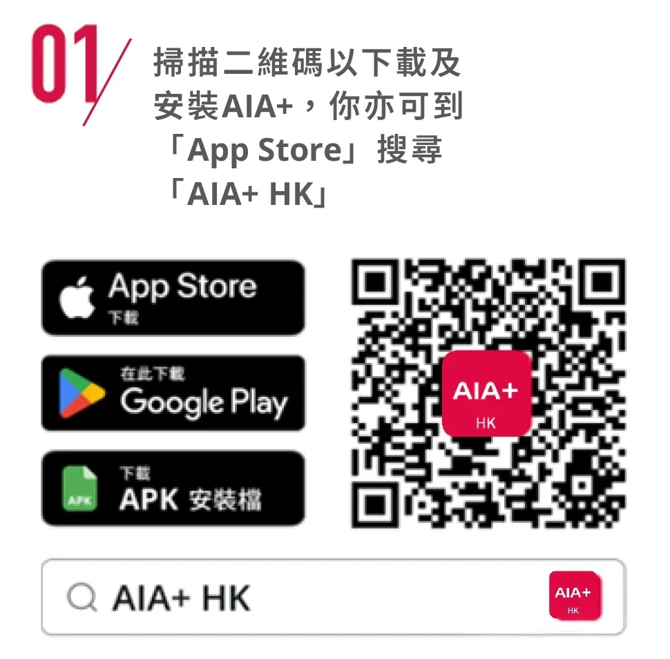 -iPhone用户:打开App Store,搜索「AIA+HK」即可下载安装。