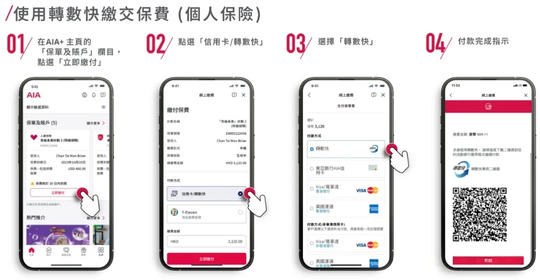 补充说明:除了通过AIA+App缴费外,也可通过香港各大银行进行直接汇款或缴费操作,具体流程可参考对应银行的指引。