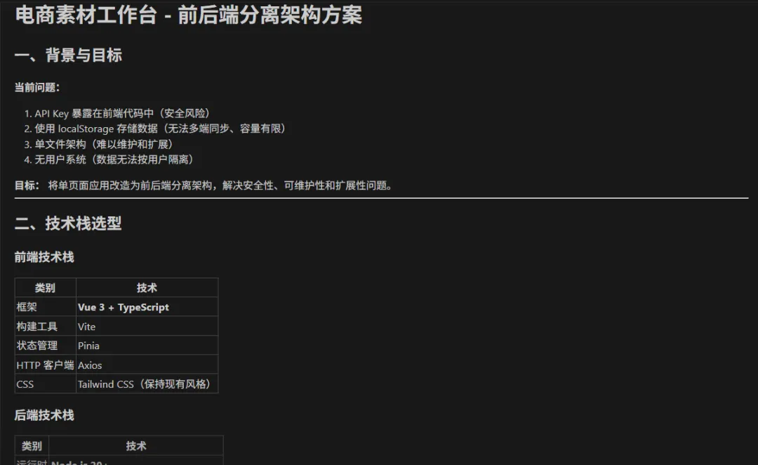 1.之前代码全部写在前端,让ai优化为前后端分离