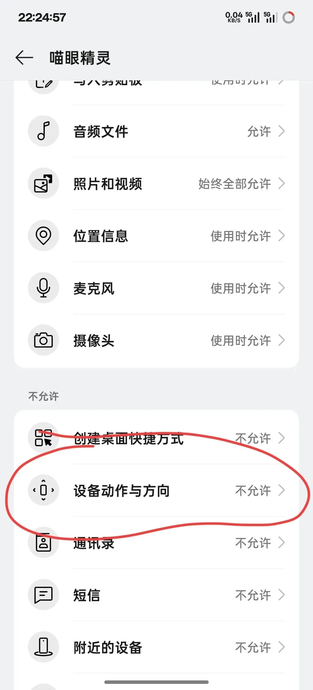 三、手机系统设置: 找到快应用软件,权限里面关闭设备动作与方向