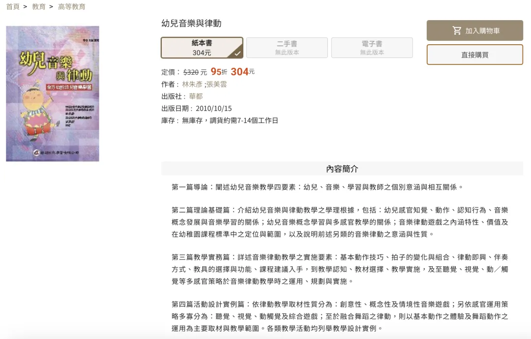 第3️⃣篇教學實務篇:詳述音樂律動教學之實施要素:基本動作技巧、拍子的變化與組合、律動即興、伴奏方式、教具的選擇與功能、課程建議入手,到教學認知、教材選擇、教學實施,及至聽覺、視覺、動 / 觸覺等多感官策略於音樂律動教學時之運用、規劃與實施。