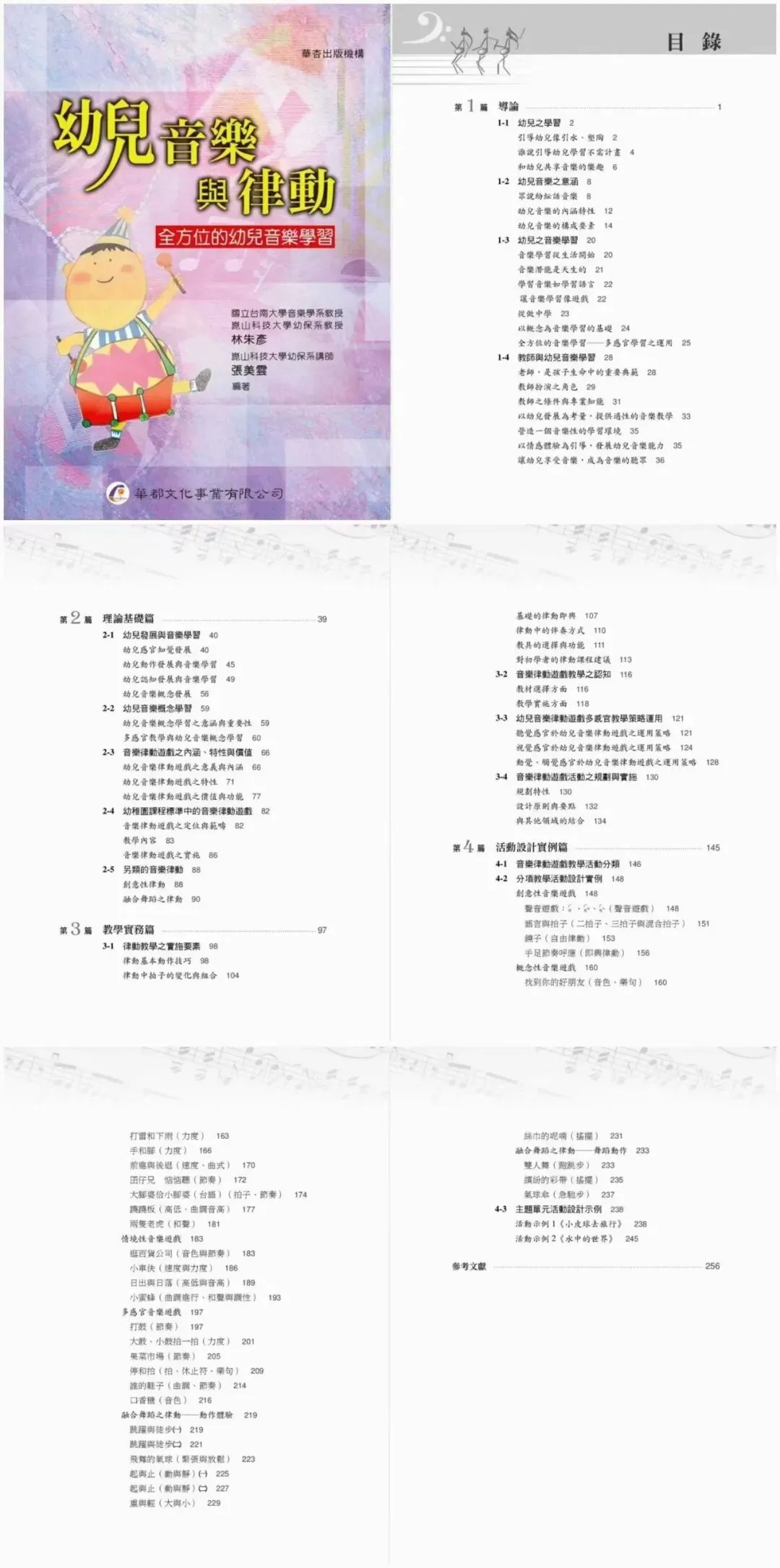 第2️⃣篇理論基礎篇:介紹幼兒音樂與律動教學之學理根據,包括:幼兒感官知覺、動作、認知行為、音樂概念發展與音樂學習的關係;幼兒音樂概念學習與多感官教學的關係;音樂律動遊戲之內涵特性、價值及在幼稚園課程標準中之定位與範圍,以及說明前述另類的音樂律動之意涵與性質。