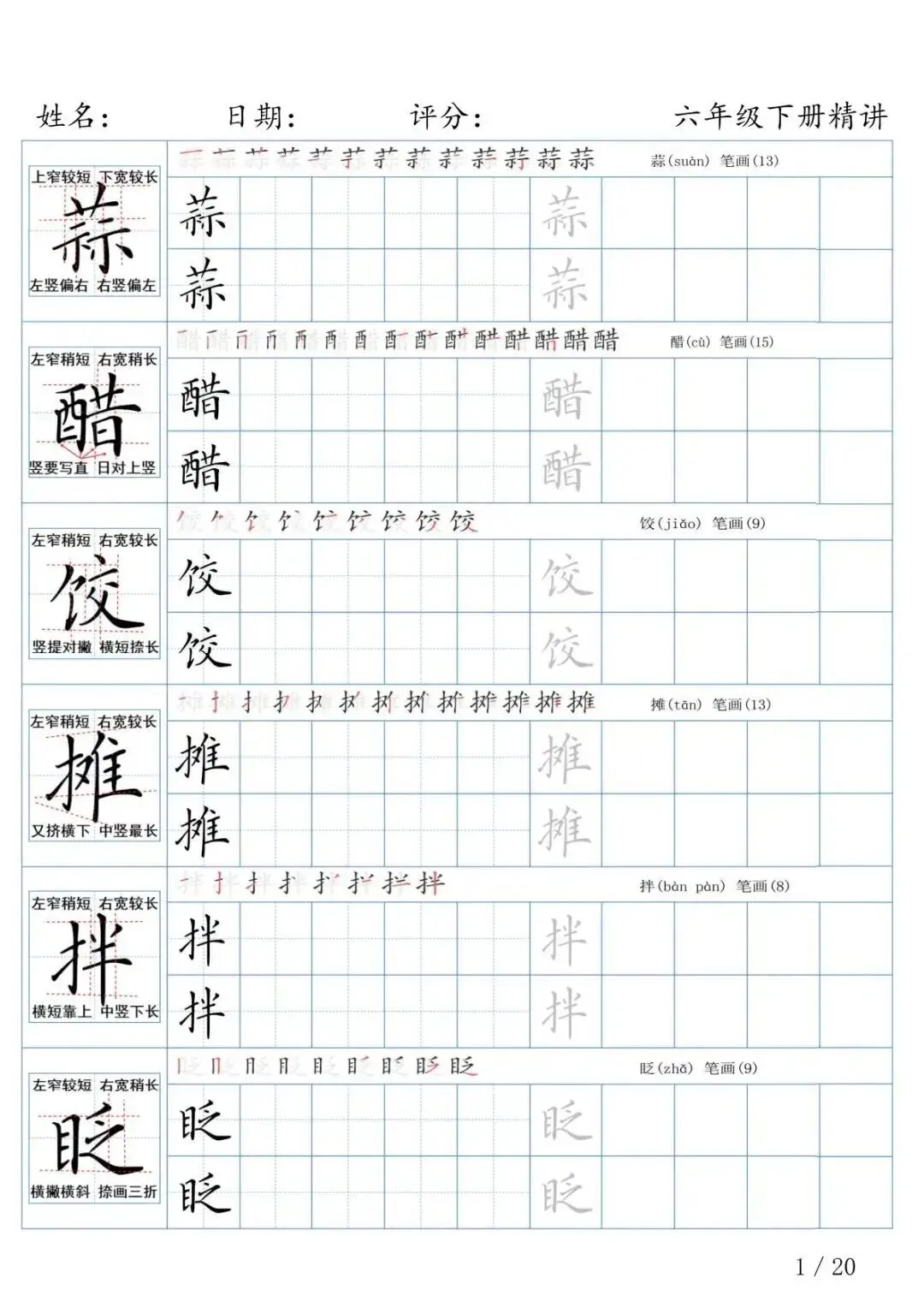随着新学期的开始,六年级语文学习进入关键阶段。这份精心准备的字帖资料,将帮助孩子系统掌握生字书写规范,为语文学习打下坚实基础。