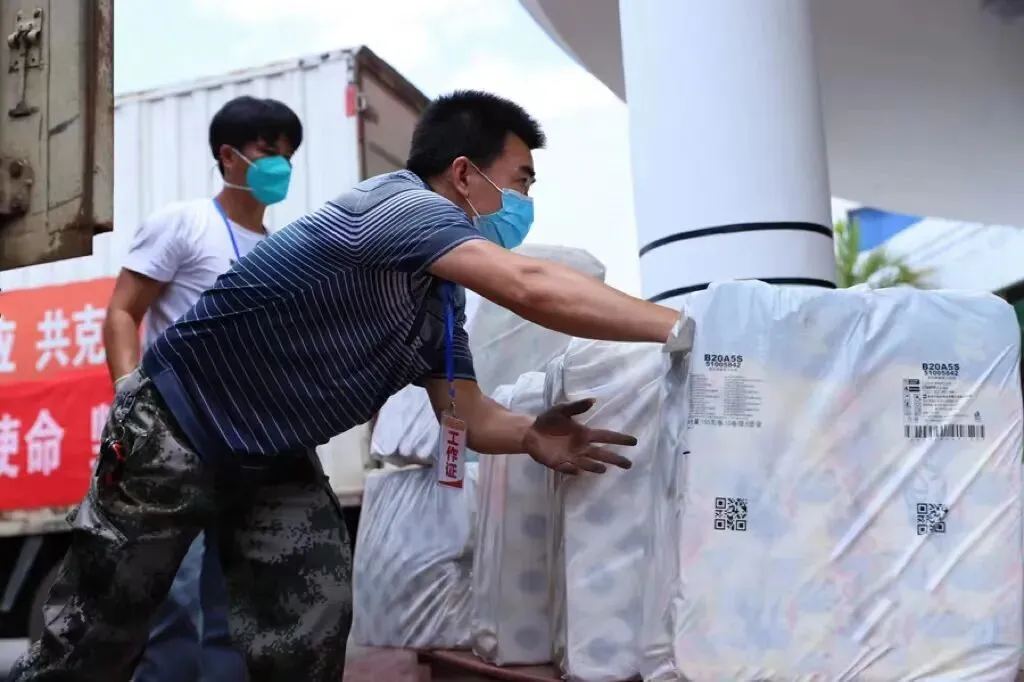 为确保防疫物资能以最快速度送达,金海浆纸协调海南金红叶纸业,争分夺秒,加班加点,协调各方资源,开辟绿色通道,将一箱箱凝聚着APP(中国)爱心关怀的纸品于8月11日中午送抵儋州市方舱医院所在地白马井镇,由儋州市疫情防控指挥部统一调配使用。