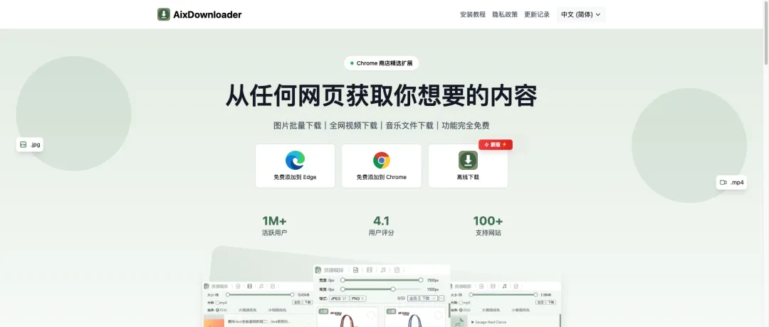 一个 免费无广告、支持全网下载 的宝藏浏览器插件——AixDownloader!