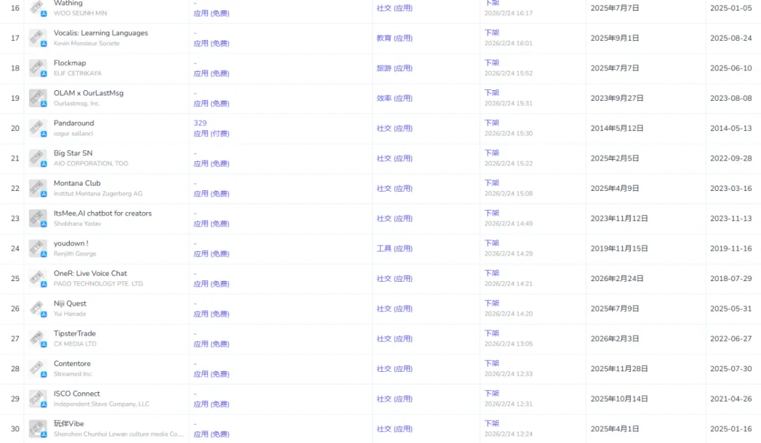 而在巴西市场,虽然清理的依然是社交类为主,但像”春辉乐玩””玩伴Vibe”这类带有旅游和轻度社交属性的中国开发者应用也未能幸免。