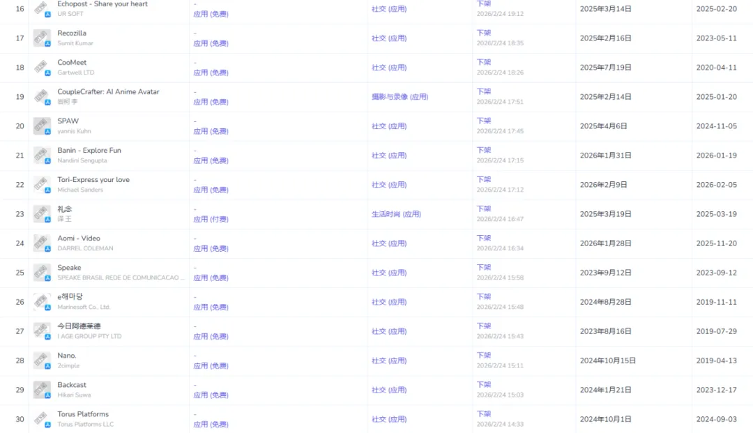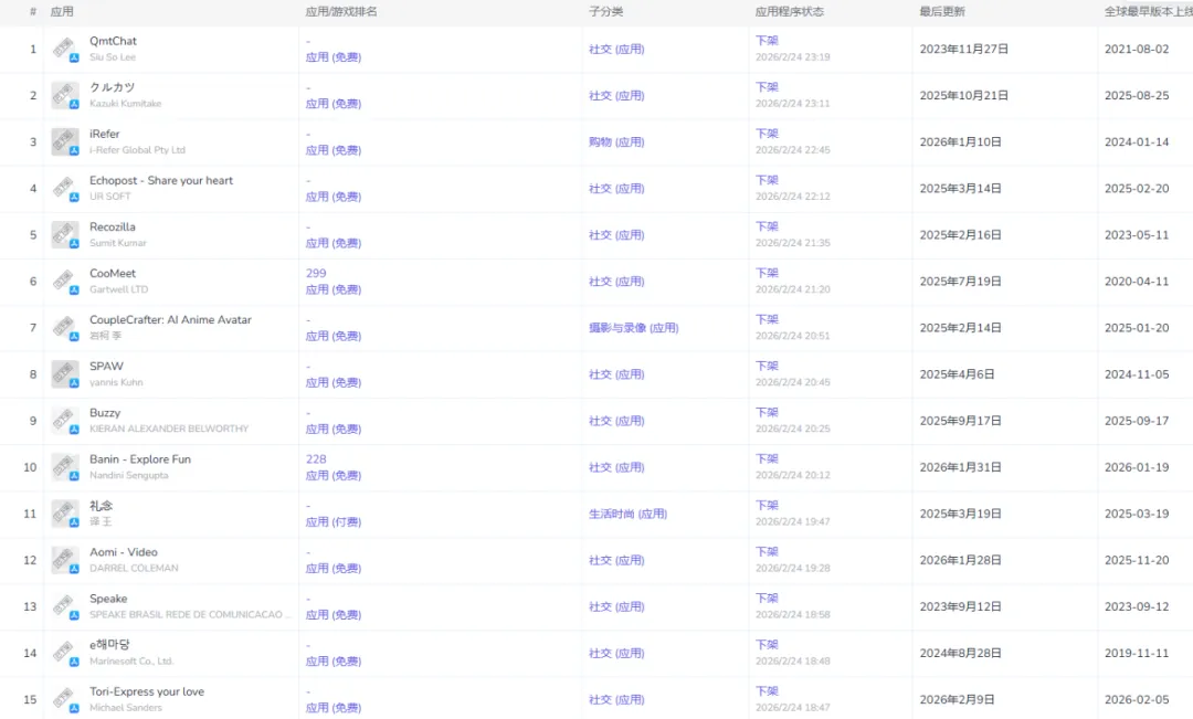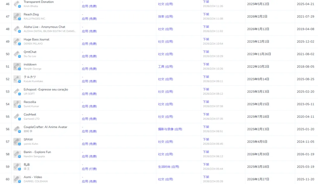 在冰冷的数据中,我梳理了被下架的中国开发者社交应用,发现它们身上有几个极其相似的“高危标签”: