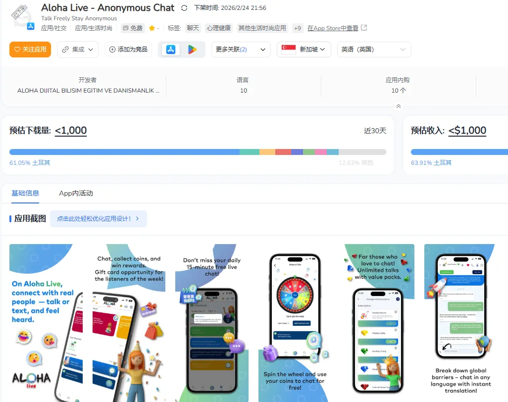 像“Aloha Live – Anonymous Chat”、”Xonder: Anonymous Chat & Vent”这种直接把”匿名”写在名字里的,更是没有任何活路。