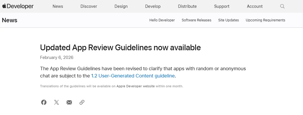 就在2月6日,苹果静悄悄更新了《App Store审核指南》,其中最重要的一条修订,就是彻底堵死了“匿名社交”的生路。