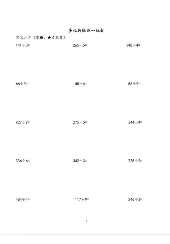 今天给大家准备好了!~三(下)数学(通用版)除法竖式计算丨可下载打印,建议分享到班级群/年级群,让家长打印出来,帮助孩子学习!