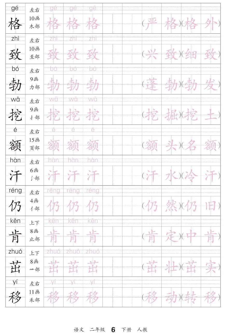 二下语文-会认字描帖电子版免费领取