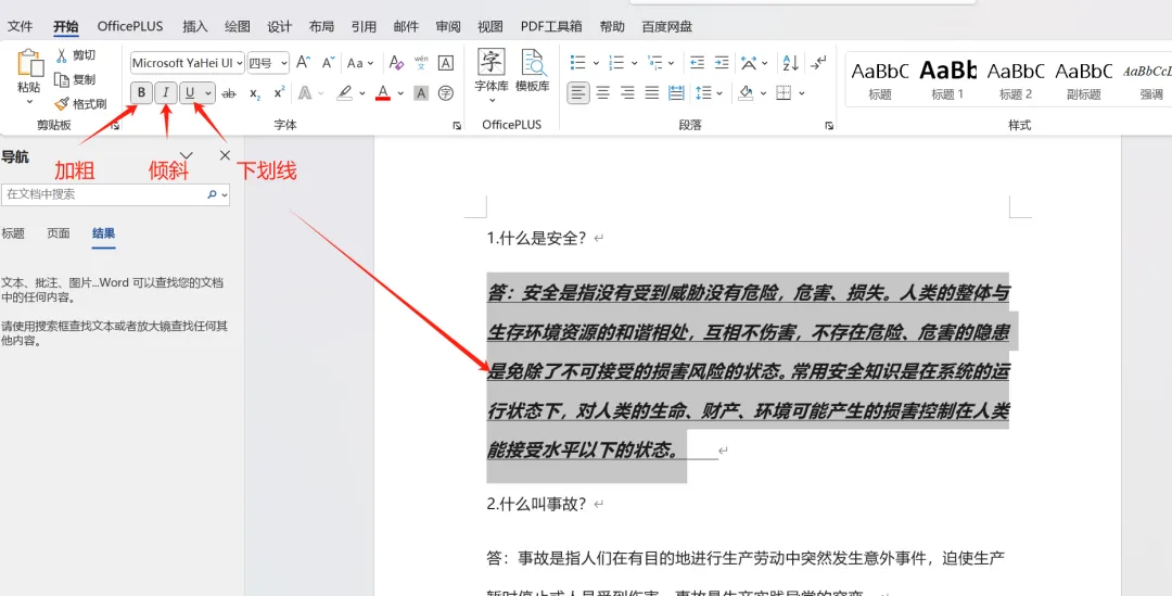 点击加粗、倾斜、下划线按钮设置对应效果,再次点击可取消。