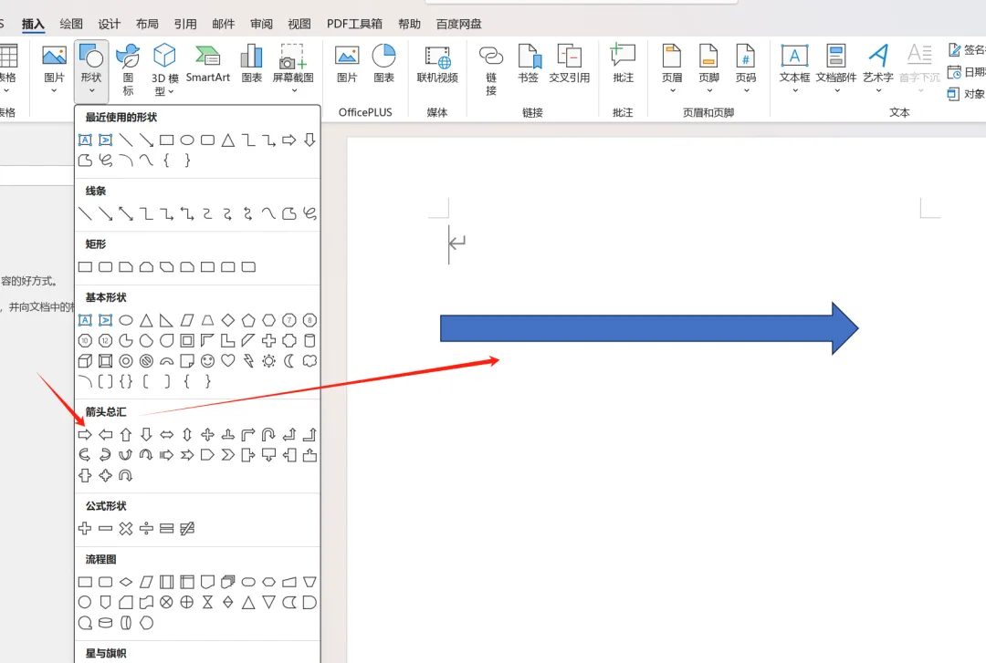 绘制形状:在文档中按住鼠标左键并拖动,即可绘制出所选形状。松开鼠标后,形状便插入到文档中。