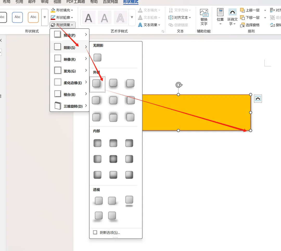 – 设置形状格式:选中图形后,在“绘图工具-格式”选项卡中,可通过“形状填充”更改填充颜色,通过“形状轮廓”调整边框颜色、宽度和样式。