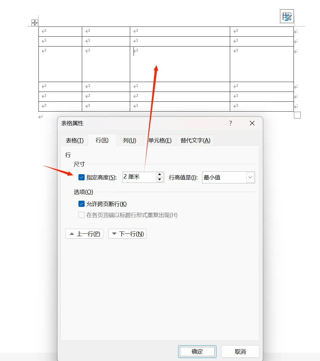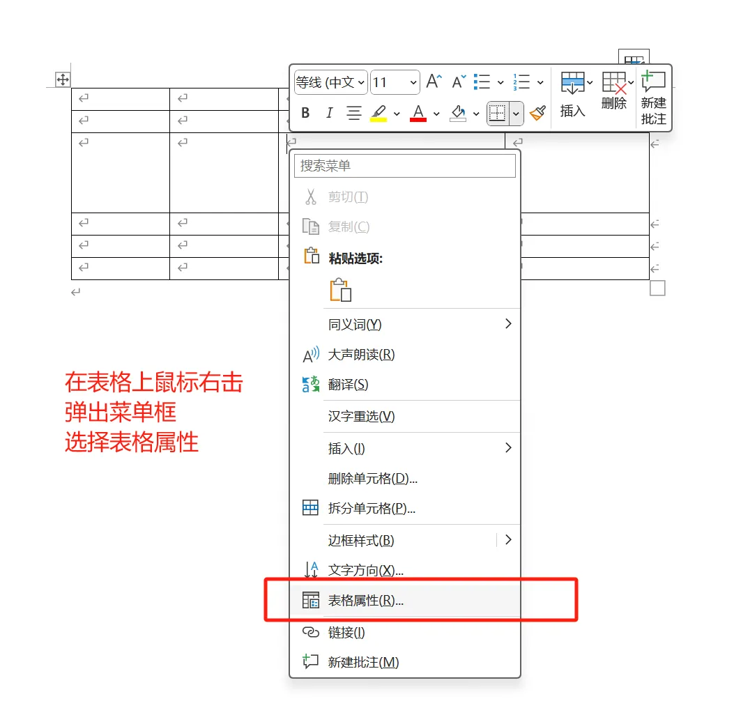 也可右键点击选择“表格属性”,在“行”或“列”选项卡中精确输入高度和宽度。