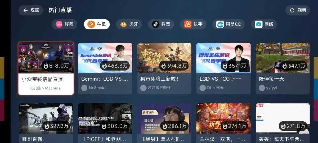 但它干的事可不简单。它把斗鱼、B站、虎牙、抖音、快手、网易CC等主流平台的直播,全部聚合在了一起。你打开它,就等于拥有了一个“直播宇宙”,想看哪个平台,直接点进去就行,再也不用切来切去。