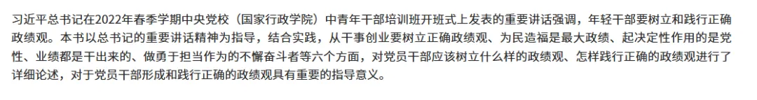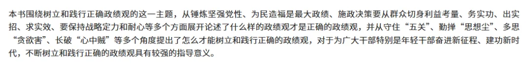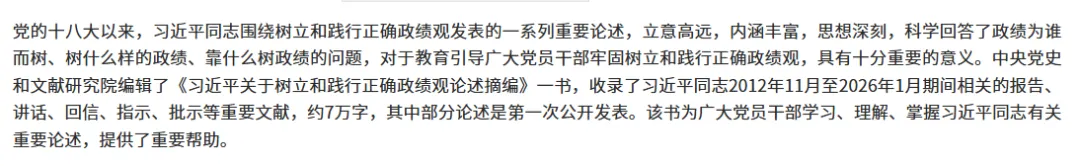 中共中央党史和文献研究院. 习近平关于树立和践行正确政绩观论述摘编[M]. 北京: 中央文献出版社, 2026. ISBN:978-7-5073-5135-4