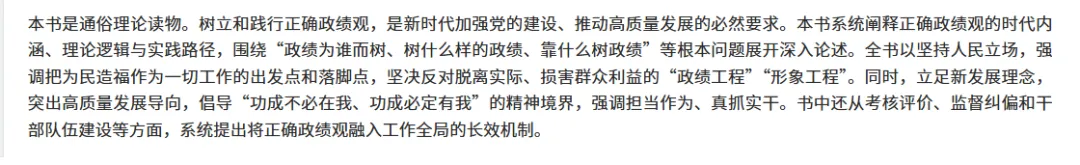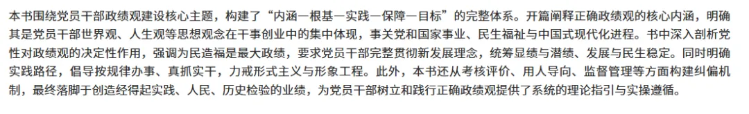 白皓. 树立和践行正确政绩观[M]. 北京: 中共中央党校出版社, 2025. ISBN:978-7-5035-7864-9