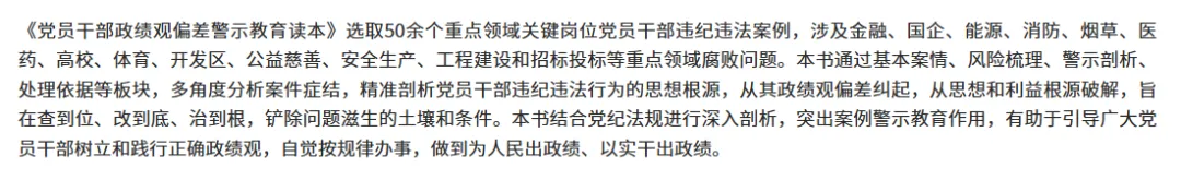 《党员干部政绩观偏差警示教育读本》编写组.党员干部政绩观偏差警示教育读本[M].北京:中国方正出版社,2026. ISBN:978-7-5174-1518-3出版ing