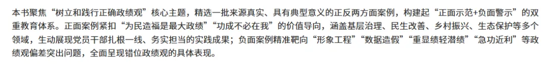 《树立和践行正确政绩观案例剖析》编写组. 树立和践行正确政绩观案例剖析[M]. 北京: 中国方正出版社, 2026. ISBN:978-7-5174-1503-9出版ing