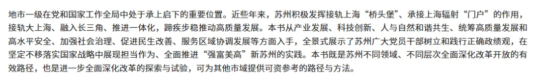中国苏州市委党校. 正确政绩观引领下的高质量发展苏州答卷[M]. 北京: 党建读物出版社, 2025. ISBN:978-7-5099-1679-7 疑似待出版