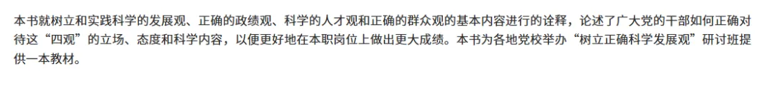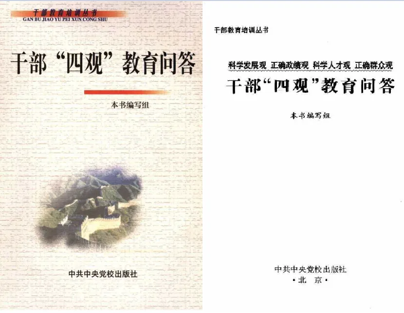 《干部“四观”教育问答》编写组. 干部“四观”教育问答: 科学发展观正确政绩观科学人才观正确群众观[M]. 北京: 中共中央党校出版社, 2004. ISBN:7-5035-3086-3