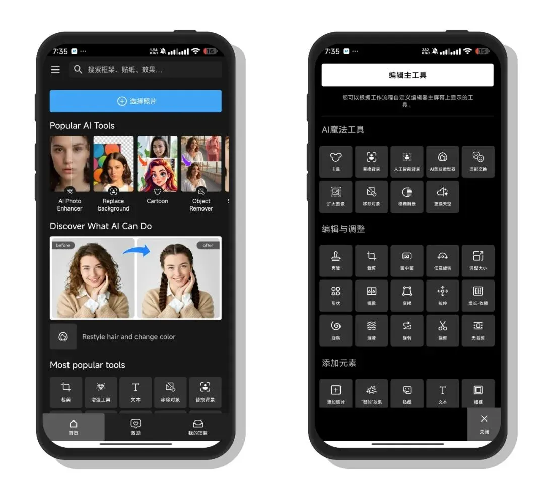 一款全能型手机照片编辑应用,集基础修图、AI智能处理、创意美化于一体,支持裁剪调色、美颜美妆、AI抠图换背景、滤镜特效、贴纸文字、拼图合成,还能制作动态照片与短视频,操作简单、素材丰富,适合日常修图、社交出图与电商商品图创作。 ʕ.•᷅ࡇ•᷄.ʔ
