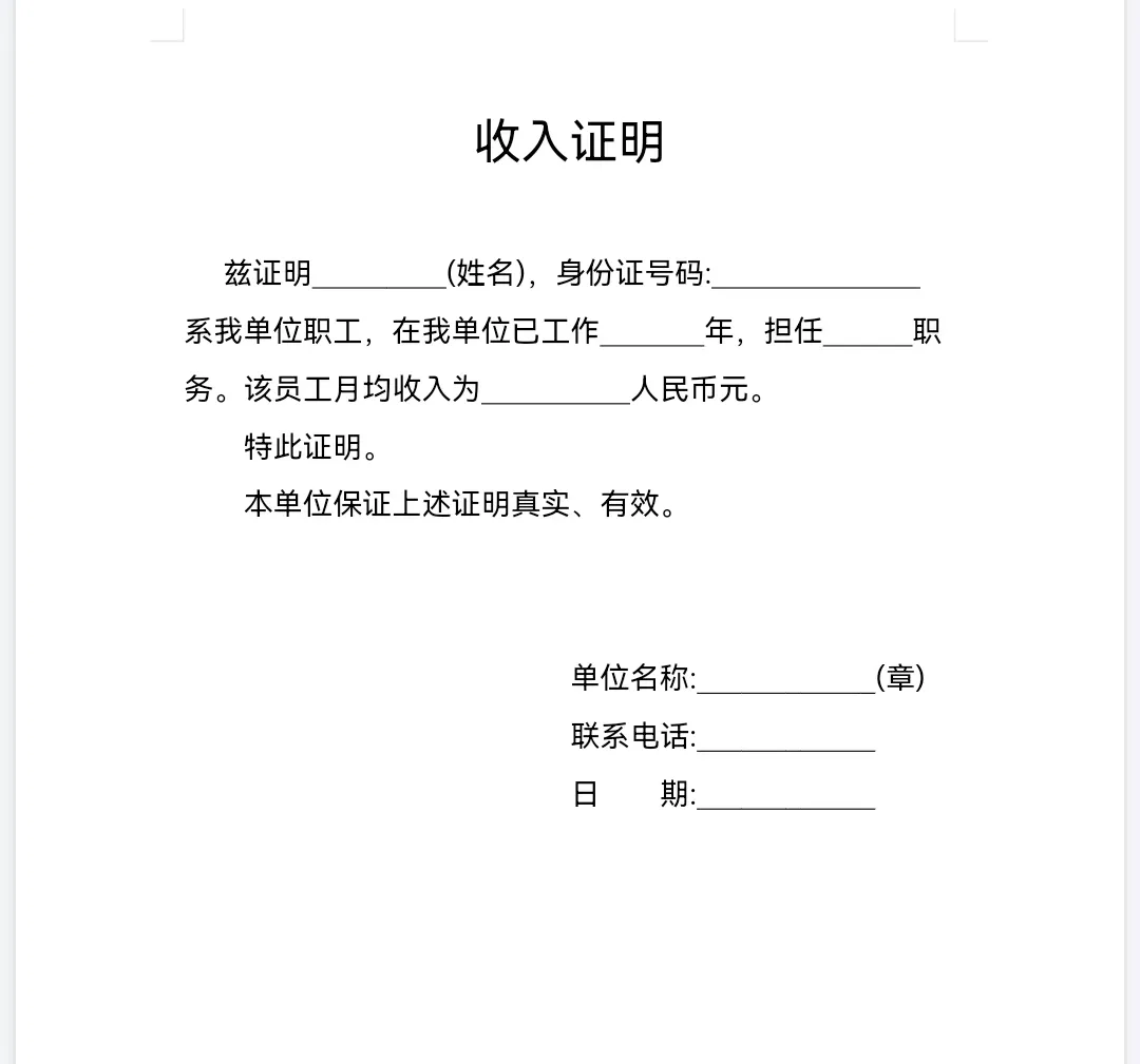 《个人收入证明模板》电子版下载打印,word版可修改