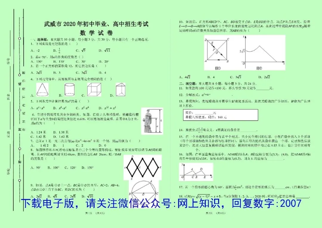 网上知识为大家整理了甘肃省武威市近5年中考数学中考真题及答案,也就是有些人说的省卷,对复习和研究中考命题有很大的帮助,你可以选择由印刷工厂打印后快递邮寄纸质版,或者用电子版自己打印,两种方式说明如下: