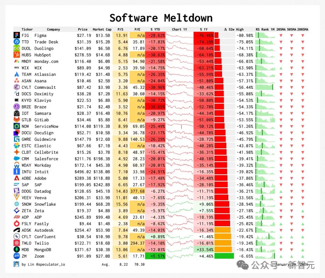 周一,华尔街因为恐惧AI而疯狂抛售软件股。