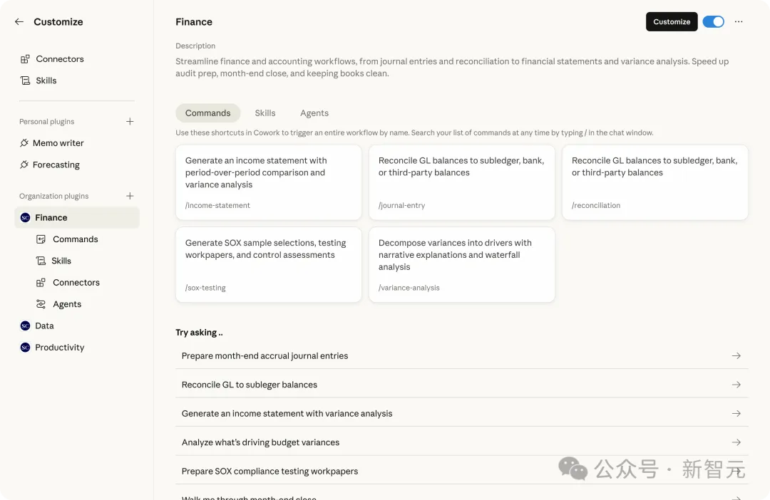 所有配置项,包括插件、技能、连接器等等,都被收进了一个全新的「自定义」统一菜单。管理员在一个界面里就能搞定所有事情。