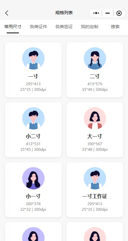 一寸两寸,考研报名用的,教师资格证用的,各种规格都有。
