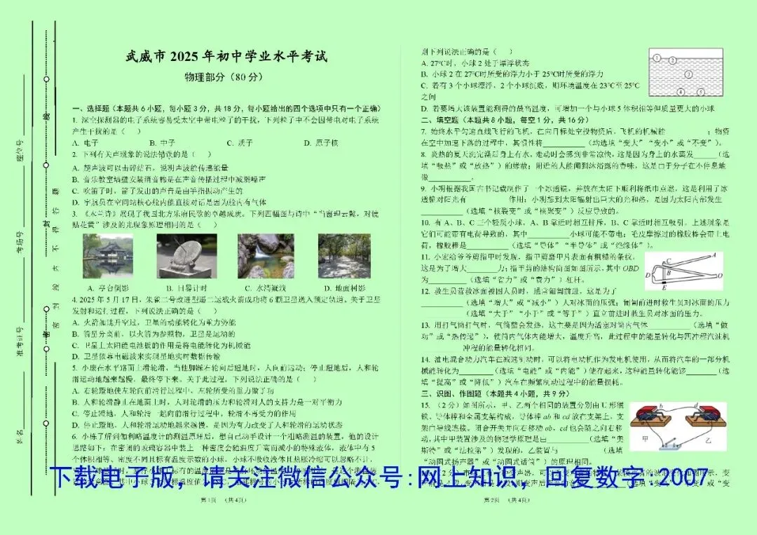 网上知识为大家整理了甘肃省武威市近5年中考物理中考真题及答案,也就是有些人说的省卷,对复习和研究中考命题有很大的帮助,你可以选择由印刷工厂打印后快递邮寄纸质版,或者用电子版自己打印,两种方式说明如下: