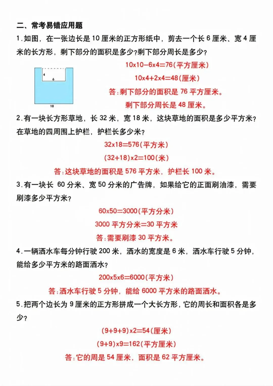 三年级下册数学面积专项训练题!电子版可打印