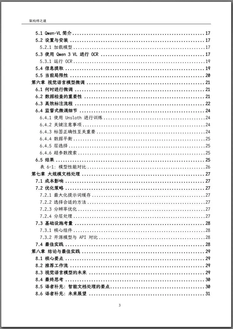 译者注:这本书的最大优点是务实。它没有停留在理论层面,而是直面大规模文档处理中常见的成本、延迟、准确率等工程挑战,并给出了经过验证的解决方案。书中反复强调的“从小规模开始、分层处理、持续验证”等原则,符合MLOps的最佳实践。同时,作者对开源模型(Qwen)和闭源模型(GPT-4o、Gemini)的对比,以及对微调细节的剖析,为从业者提供了宝贵的参考。