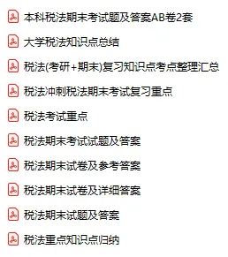今天分享的资料是「0145-税法」电子版+学习笔记+知识点总结+期末考试重点+复习资料+习题集及答案+名词解释+历年真题试卷及答案+题库及答案+复习重点+思考题及参考答案+公式总结+考试重点基础题+知识总结+高清PDF可打印+免费分享!