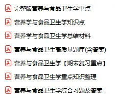 今天分享的资料是「0151-食品卫生与营养学」电子版+学习笔记+知识点总结+期末考试重点+复习资料+习题集及答案+名词解释+历年真题试卷及答案+题库及答案+复习重点+思考题及参考答案+公式总结+考试重点基础题+知识总结+高清PDF可打印+免费分享!