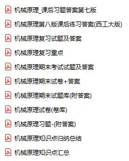 今天分享的资料是「0086-机械原理」电子版+学习笔记+知识点总结+期末考试重点+复习资料+习题集及答案+名词解释+历年真题试卷及答案+题库及答案+复习重点+思考题及参考答案+公式总结+考试重点基础题+知识总结+高清PDF可打印+免费分享!