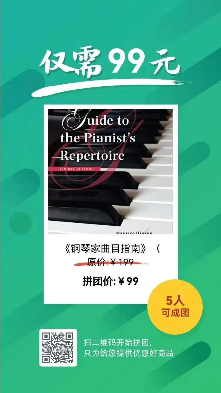 📚《钢琴家曲目指南》(第四版)中文参考版+英文官方版+中英文对照电子版,优惠拼团请点击阅读原文或扫码下图二维码(拼团马上发放,请添加客服微信:bwv618):