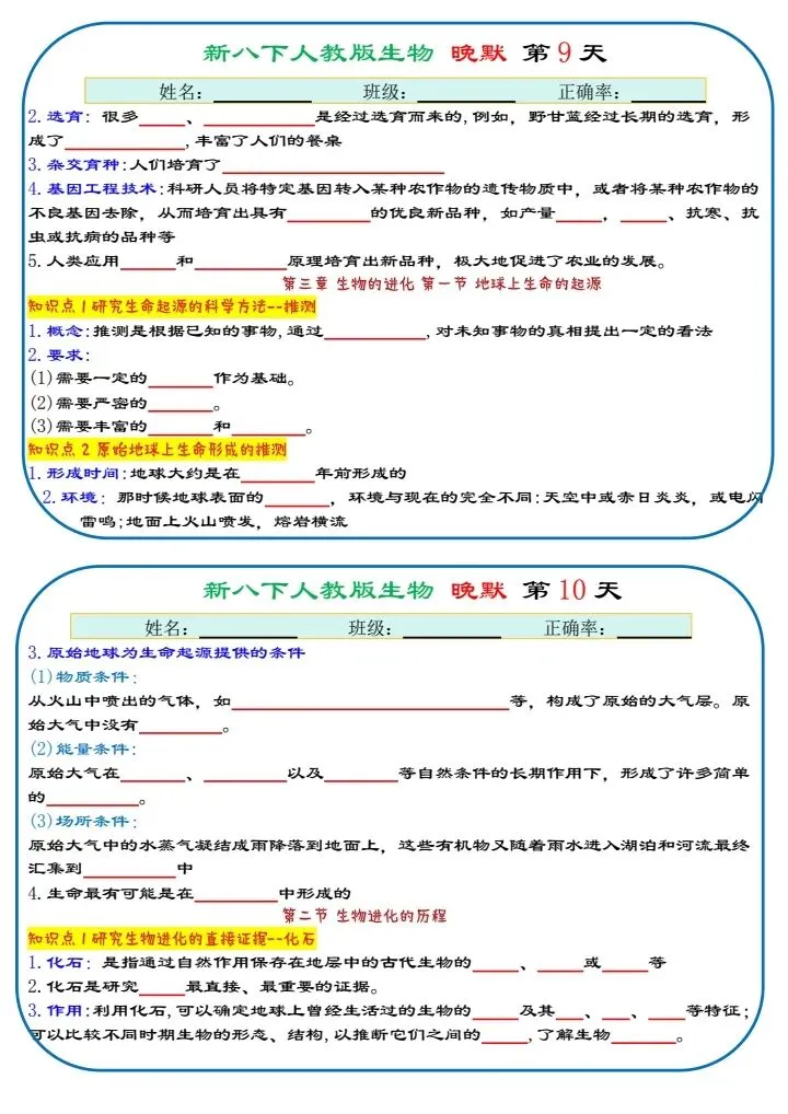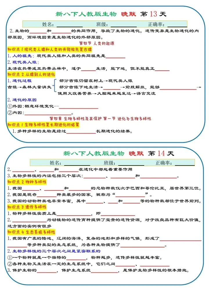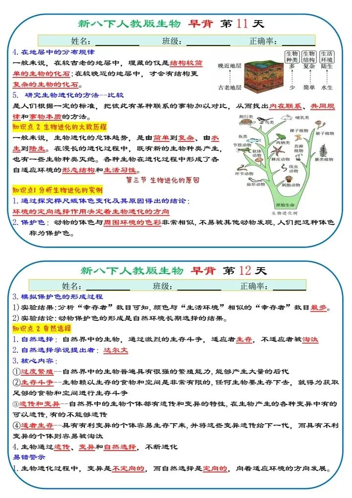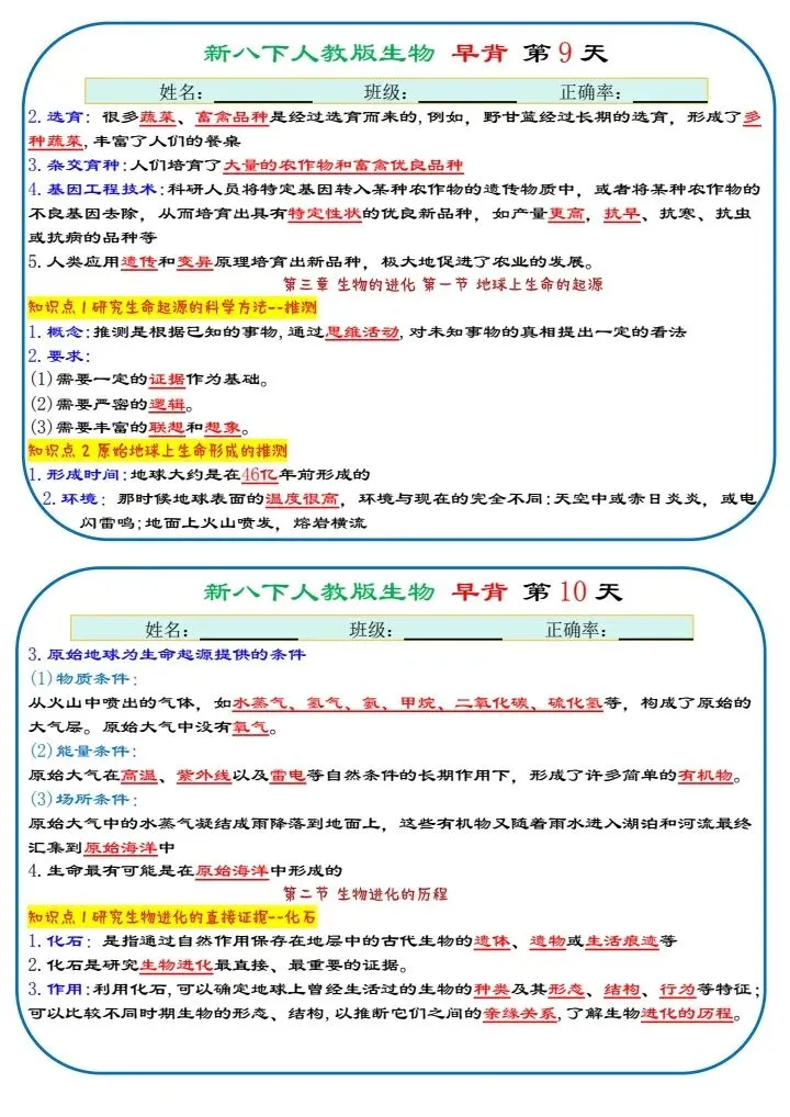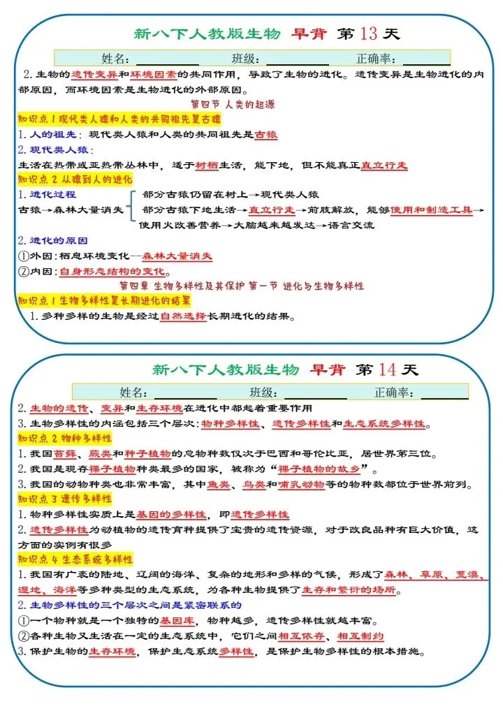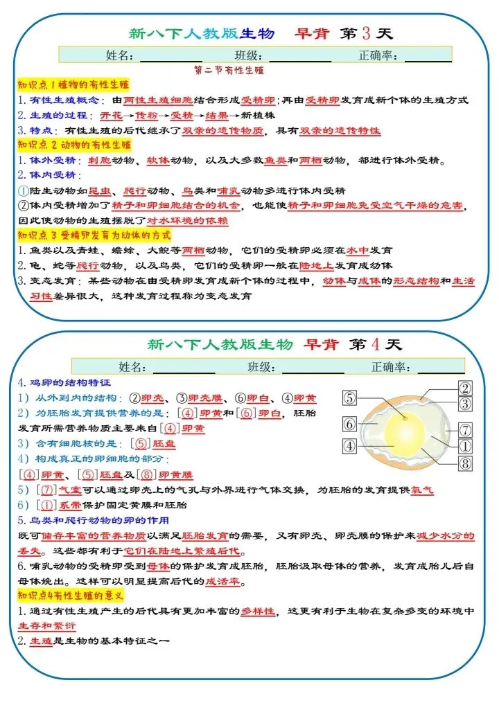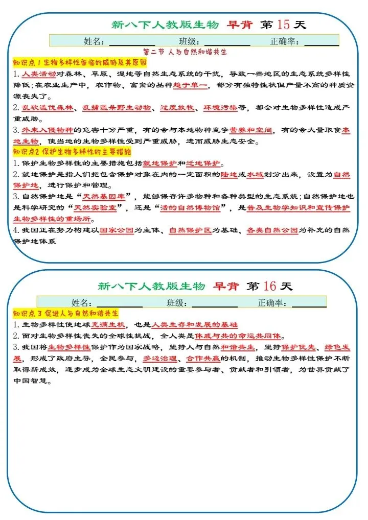 八下生物|2026年春期最新版八年级下册生物寒假预习(默写版+背诵版)小纸条,提分必备!预习必备!完整电子版可打印!